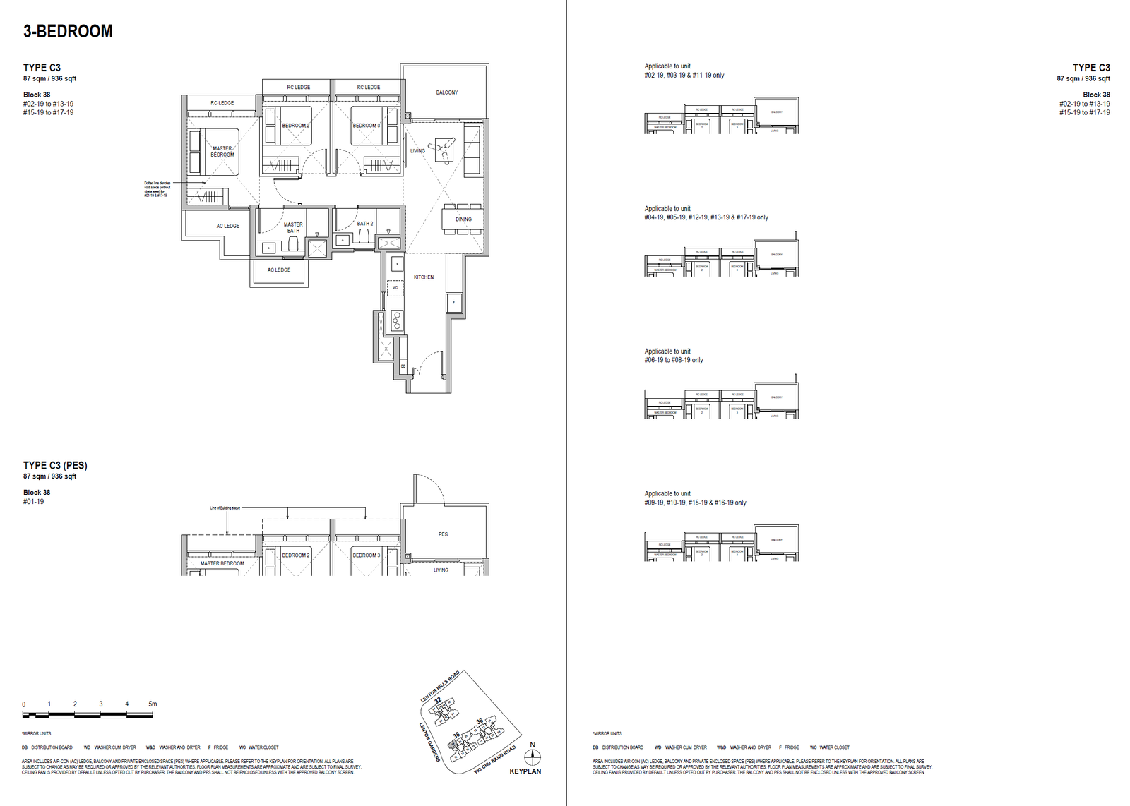 | 3 Bedroom | C3 | 936 | 7 | $2,112,000 |